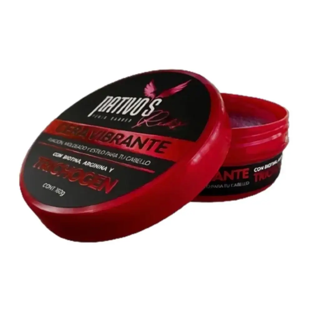 La Cera Nativos Vibrante Reds con Trichogen cuenta con Biotina que fortalece y estimula el crecimiento del cabello. Brinda fijación duradera, brillo natural, fácil de aplicar, moldear y retirar con agua.
