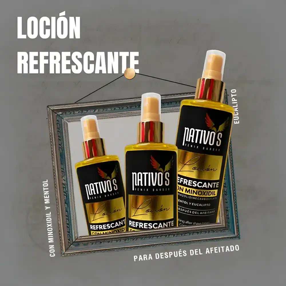 Loción Nativos After Sabe Refrescante, ideal para después del afeitado, brindando una sensación refrescante y dejando un delicioso aroma en la piel.
